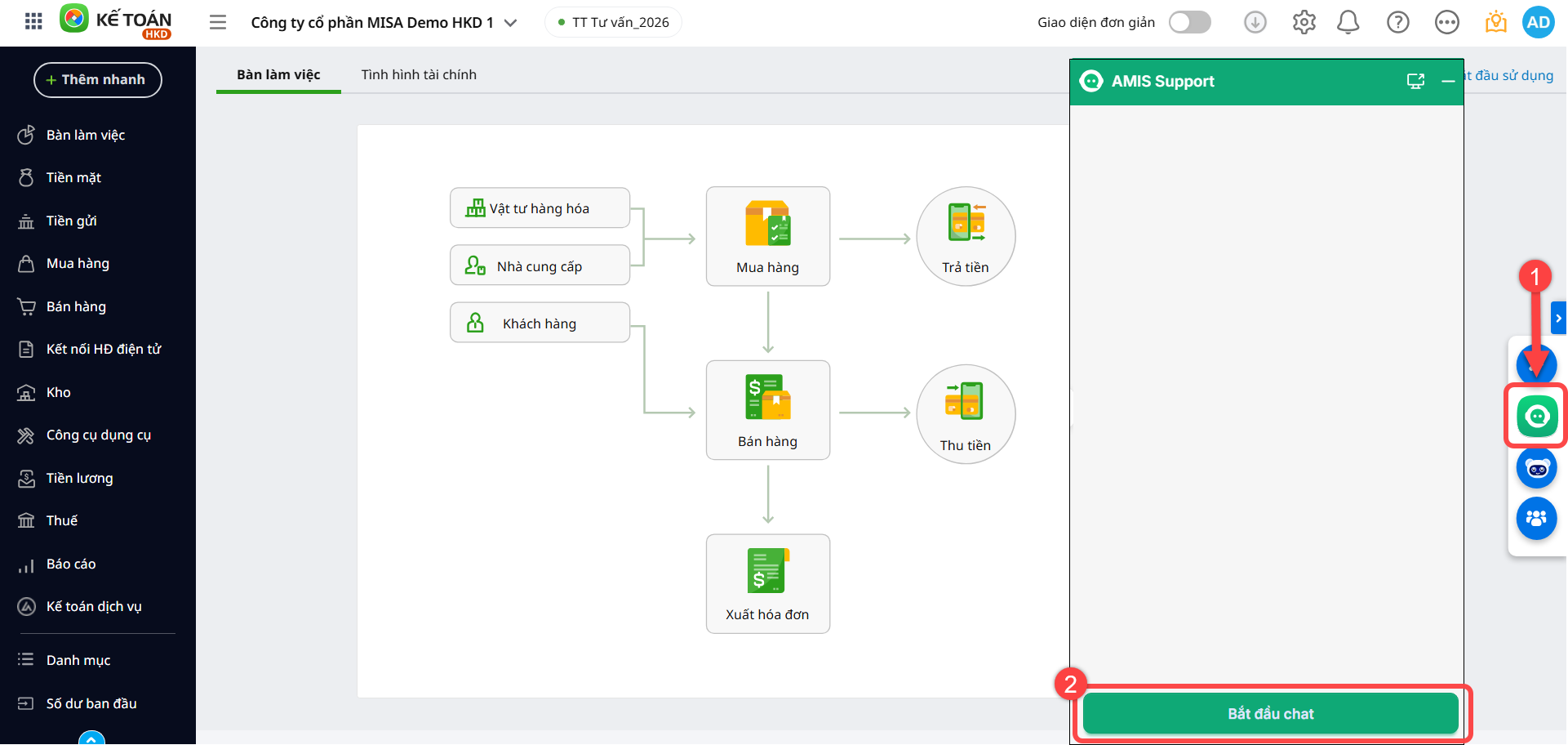 Từ hôm nay, Quý khách đã có thể liên hệ đến nhân viên tư vấn và hỗ trợ MISA qua kênh CHAT VỚI NHÂN VIÊN HỖ TRỢ ngay trên phần mềm AMIS Kế toán HKD khi có vướng mắc cần giải đáp hỗ trợ.