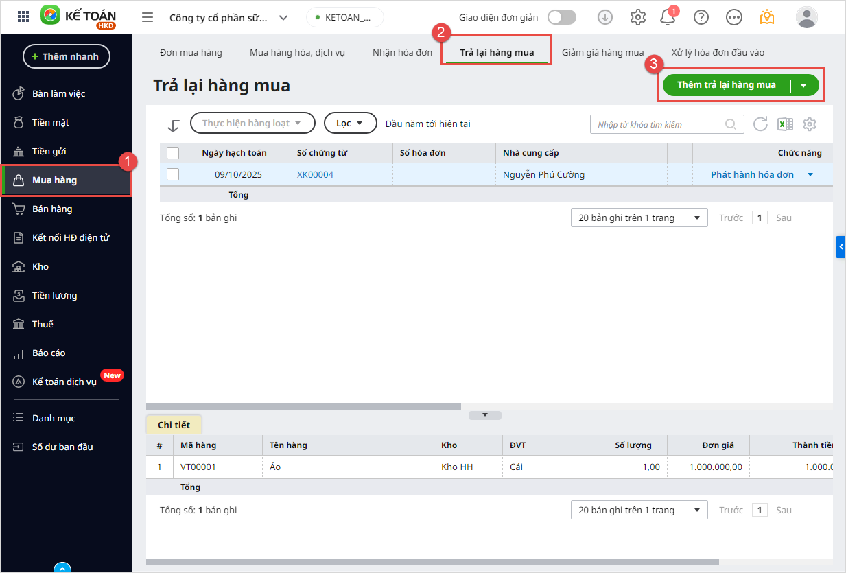 Khi phát sinh nghiệp vụ trả lại hàng mua, sẽ có 2 trường hợp phát hành hóa đơn:II. Các bước thực hiện