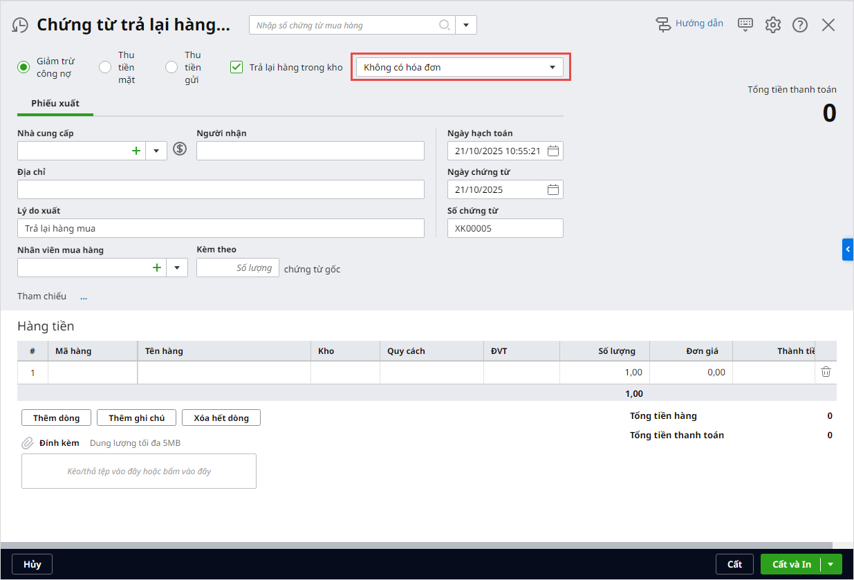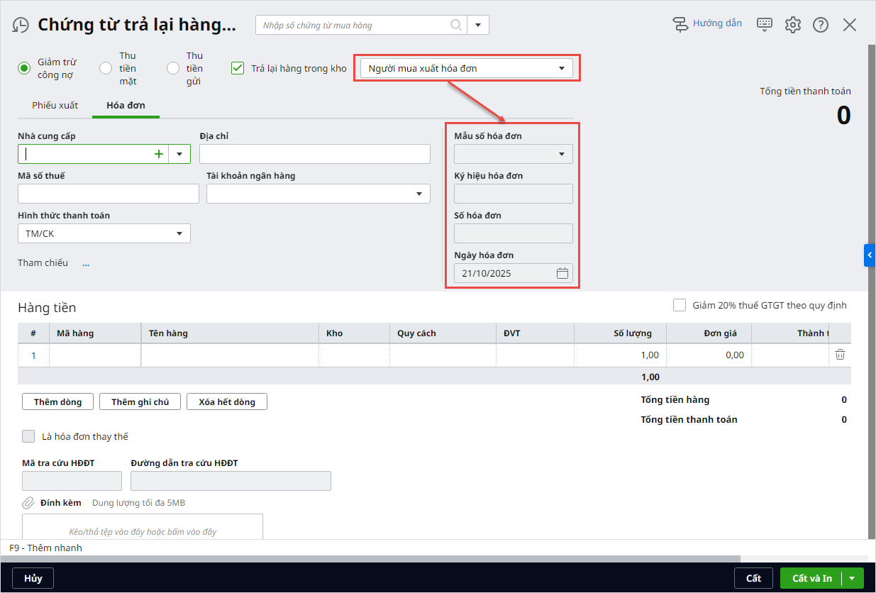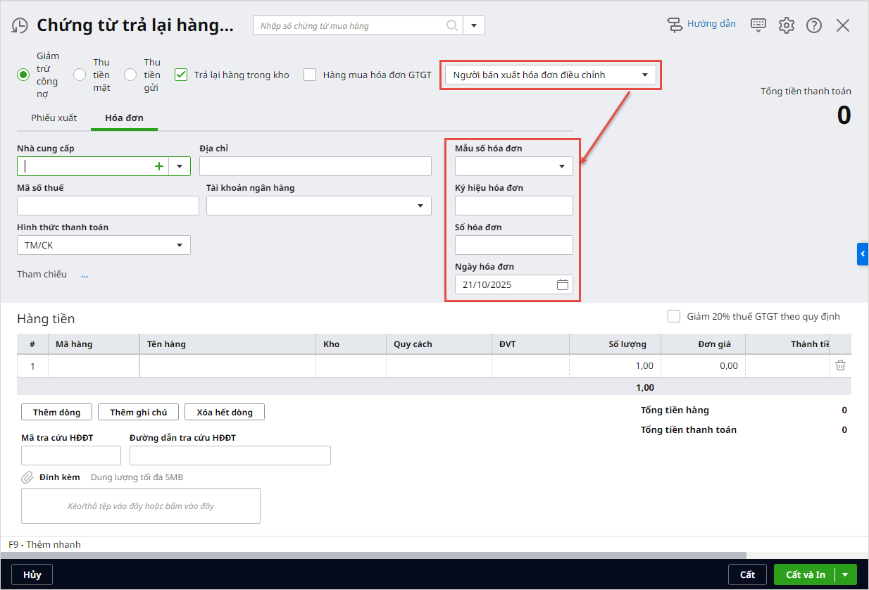 Cho phép lựa chọn người bán xuất hóa đơn điều chỉnh hoặc người mua xuất hóa đơn trên chứng từ trả lại hàng mua