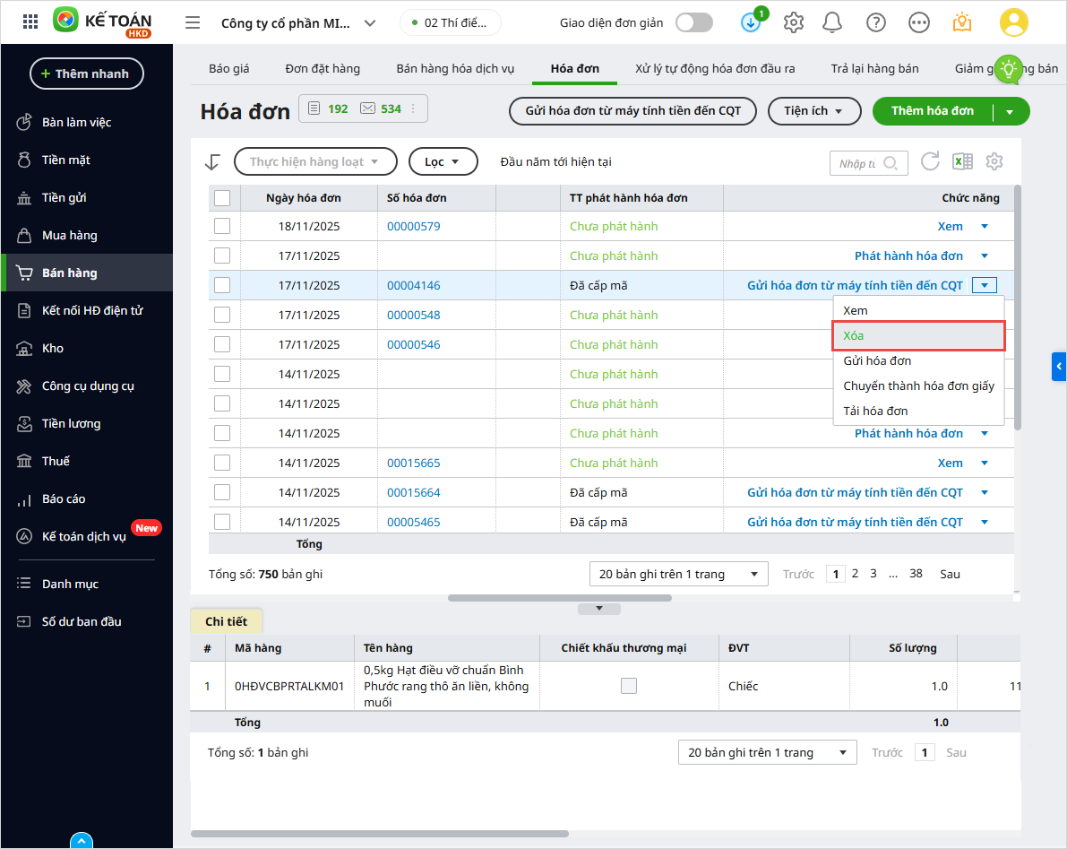 Bài viết hướng dẫn xóa chứng từ bán hàng lập kèm hóa đơn đã phát hành trong một số trường hợp nhất định, đồng thời không hiển thị cảnh báo lỗi đối với các chứng từ đủ điều kiện xóa.