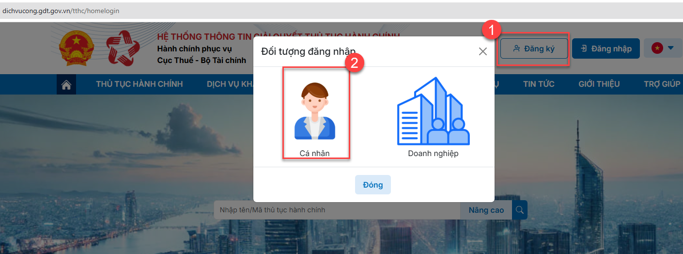 Đăng ký tài khoản trên trang Cổng dịch vụ công thuế điện tử (dichvucong.gdt.gov.vn) áp dụng với HKD, CNKD mới