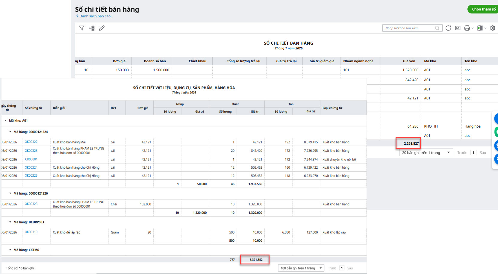 6. Giá vốn trên Sổ chi tiết bán hàng không khớp với giá trị Xuất kho trên báo cáo kho thì làm thế nào?