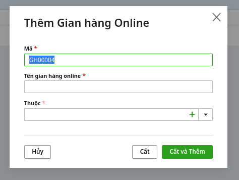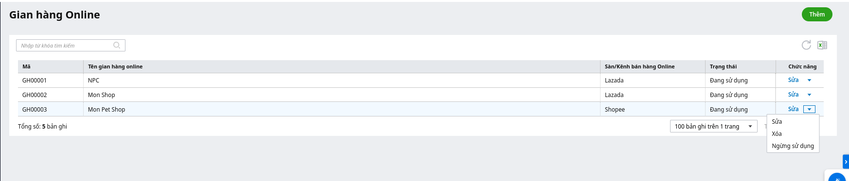 Bước 2: Tại màn hình danh sách Gian hàng Online, chọn chức năng Thêm: