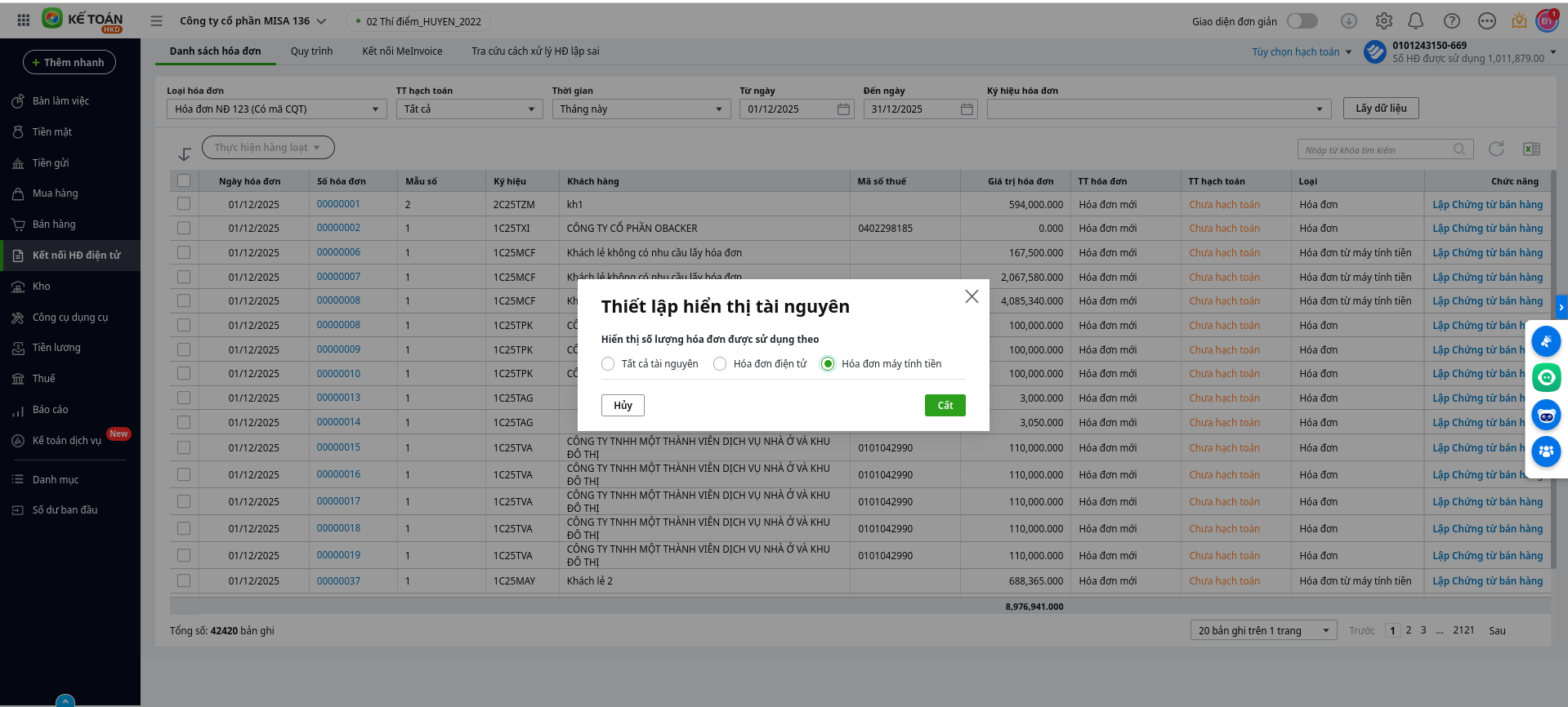 - Phần mềm mặc định hiển thị số lượng HĐ còn được sử dụng là tất cả tài nguyên bao gồm cả Hóa đơn điện tử có mã thông thường và Hóa đơn máy tính tiền.
