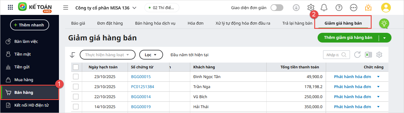 Bước 1: Vào phân hệ Bán hàng\Giảm giá hàng bán