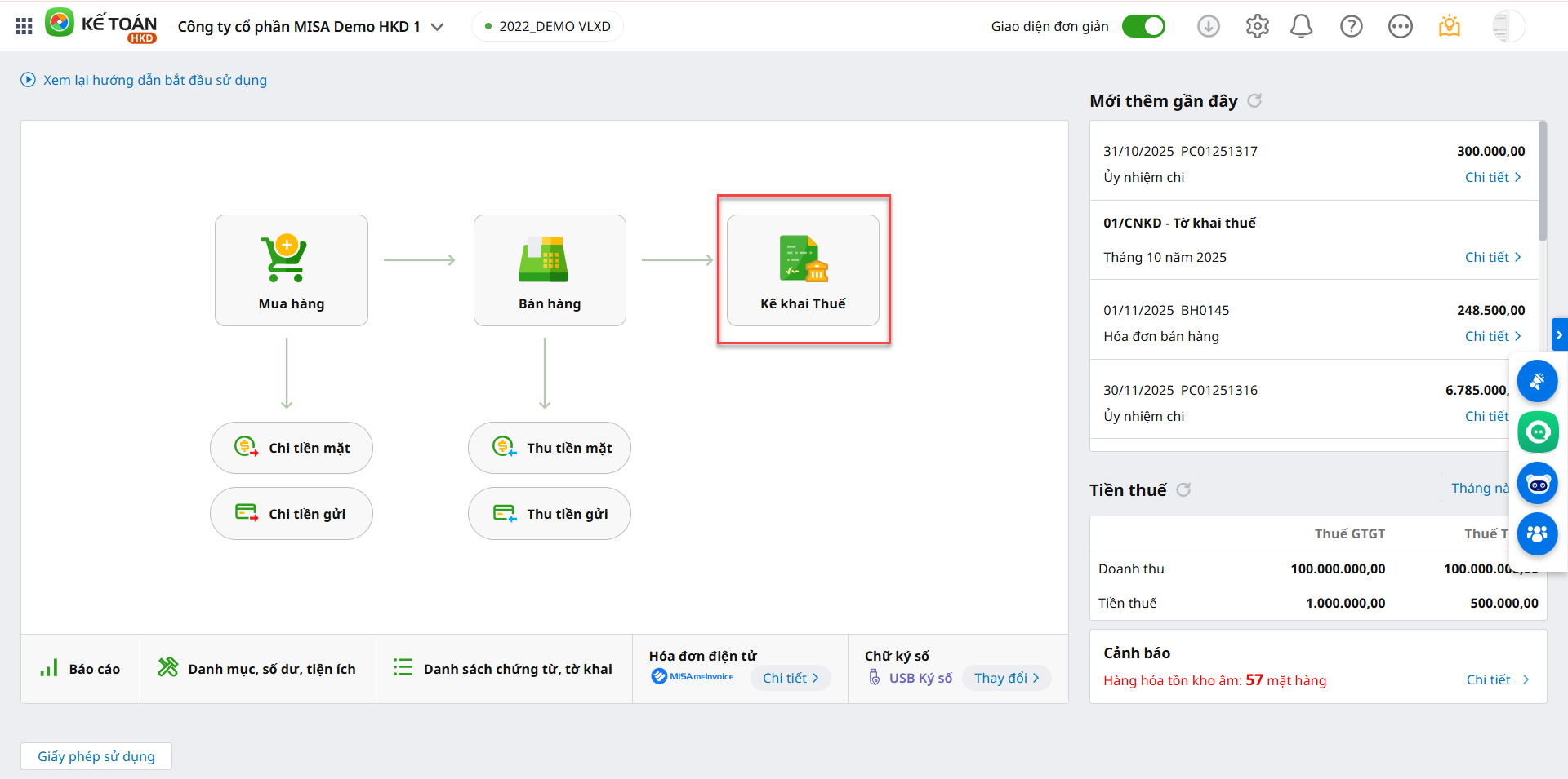 Bước 1: Trên giao diện đơn giản, chọn Kê khai thuế