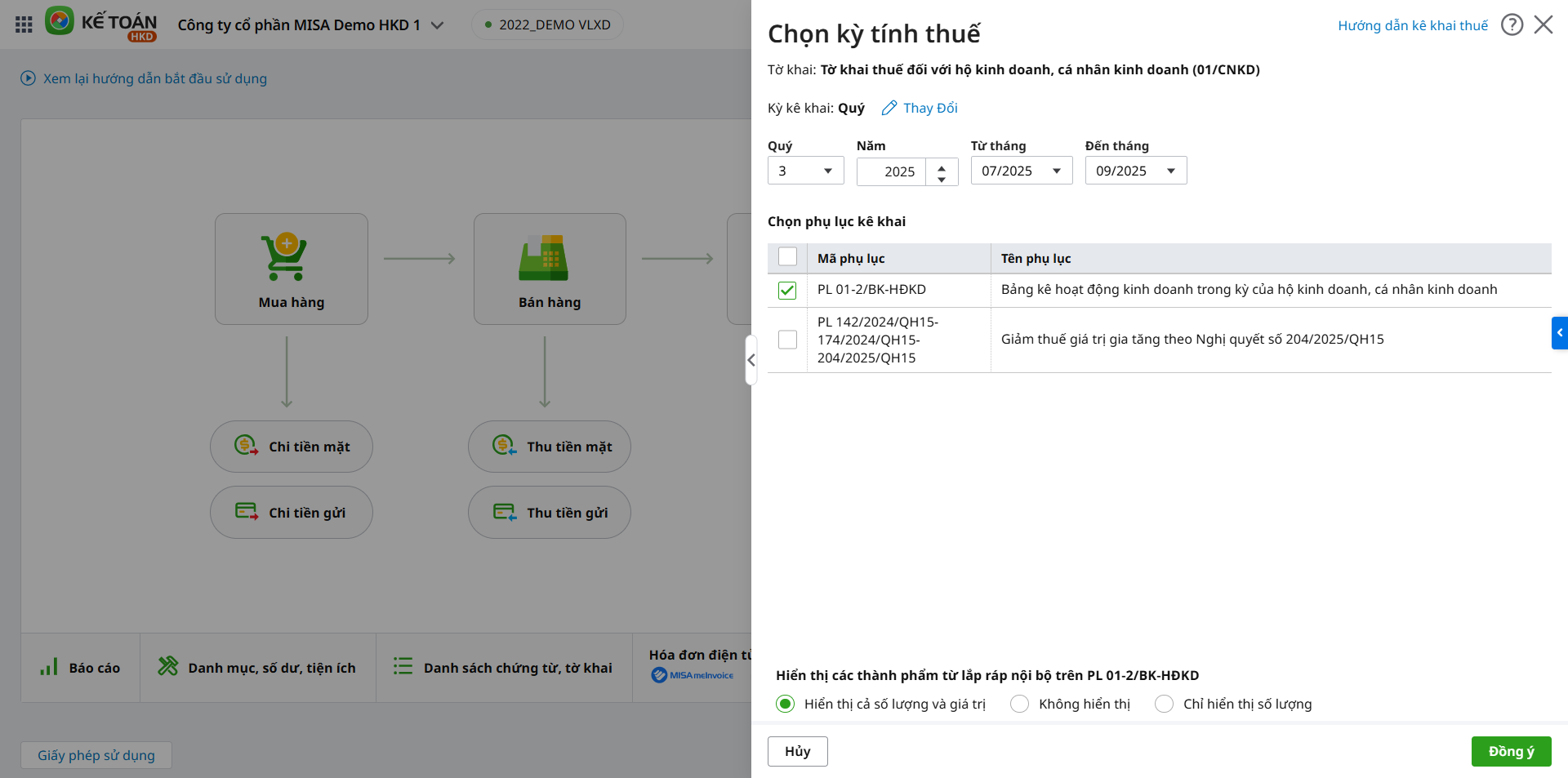 Bảng kê hoạt động kinh doanh trong kỳ của hộ kinh doanh, cá nhân kinh doanh Chương trình tự động tổng hợp số liệu phát sinh. Anh/Chị có thể chỉnh sửa, thêm hoặc xóa để bổ sung hoặc loại bỏ thông tin: