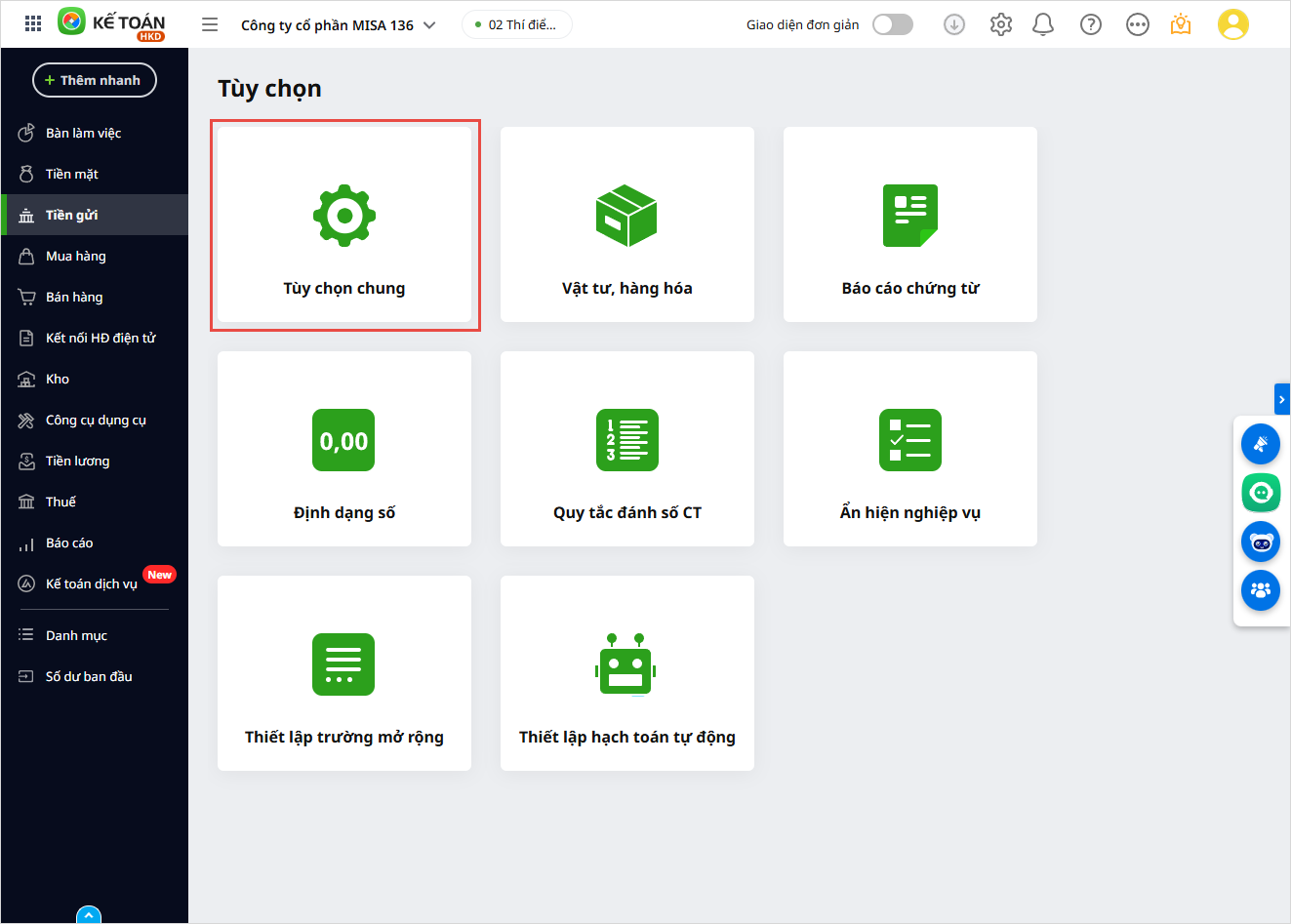 Lưu ý: Phân hệ Kết nối HĐ điện tử chỉ hiển thị khi anh/chị đã tích chọn Có sử dụng dịch vụ hóa đơn điện tử Meinvoice.vn tại phần Các tiện tích và thiết lập\Tùy chọn\Tùy chọn chung.