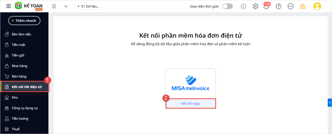 – Vào phân hệ Kết nối HĐ điện tử, nhấn Kết nối ngay.