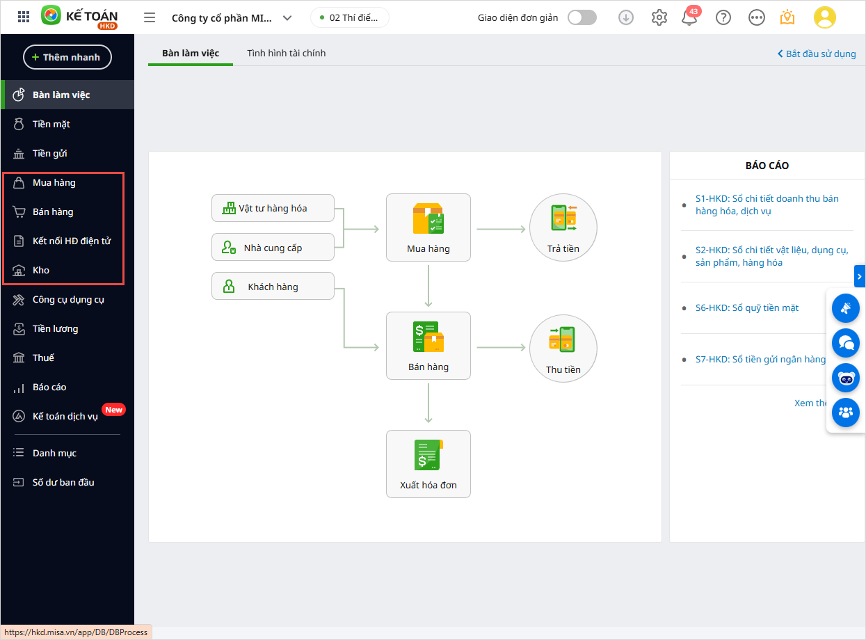 4. Đăng nhập vào AMIS Kế toán HKD, xác định phân hệ mà chứng từ vừa lấy về thuộc (Mua hàng, Bán hàng hoặc Kho)