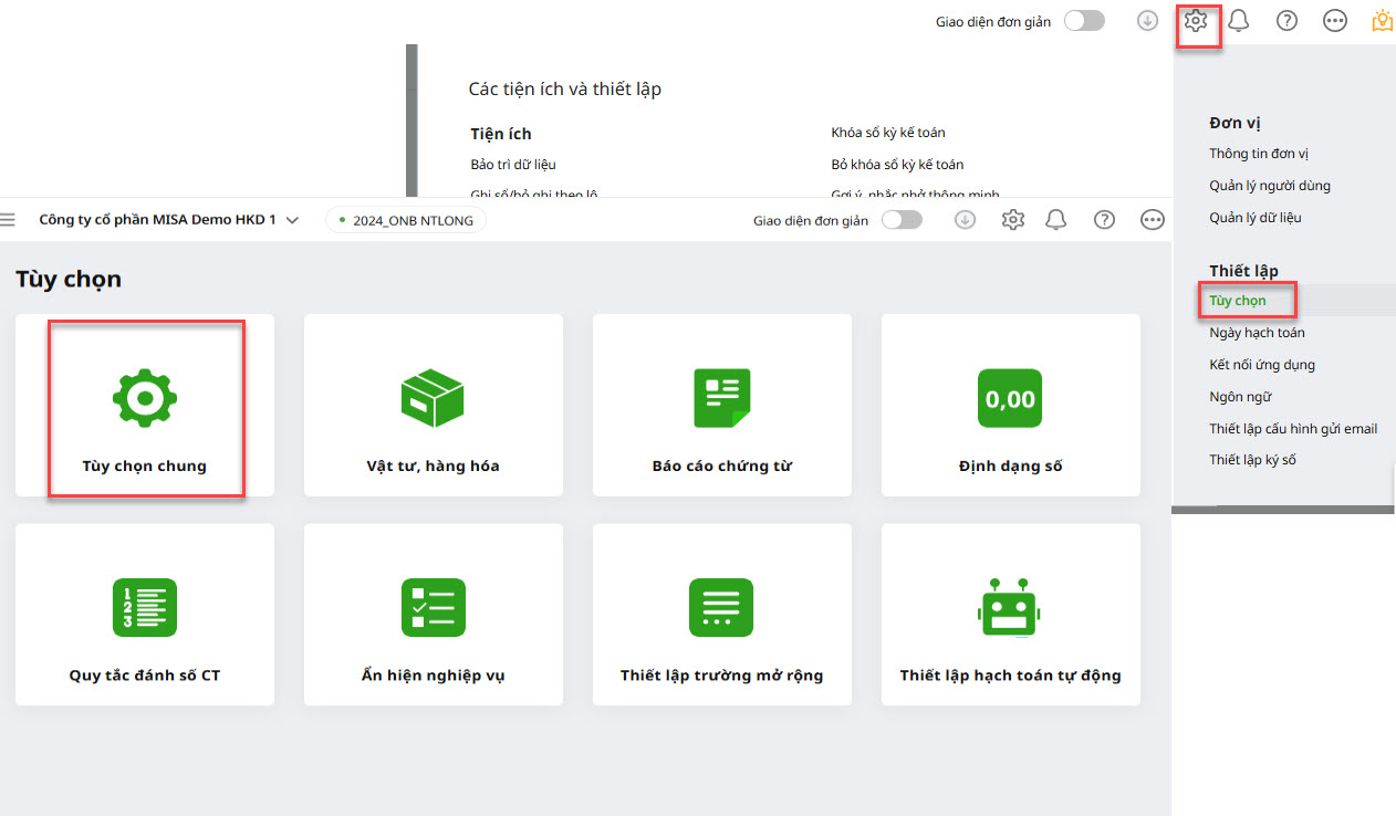 Bước 1: Vào bánh răng (⚙) Các tiện ích và thiết lập\Tùy chọn\Tùy chọn chung