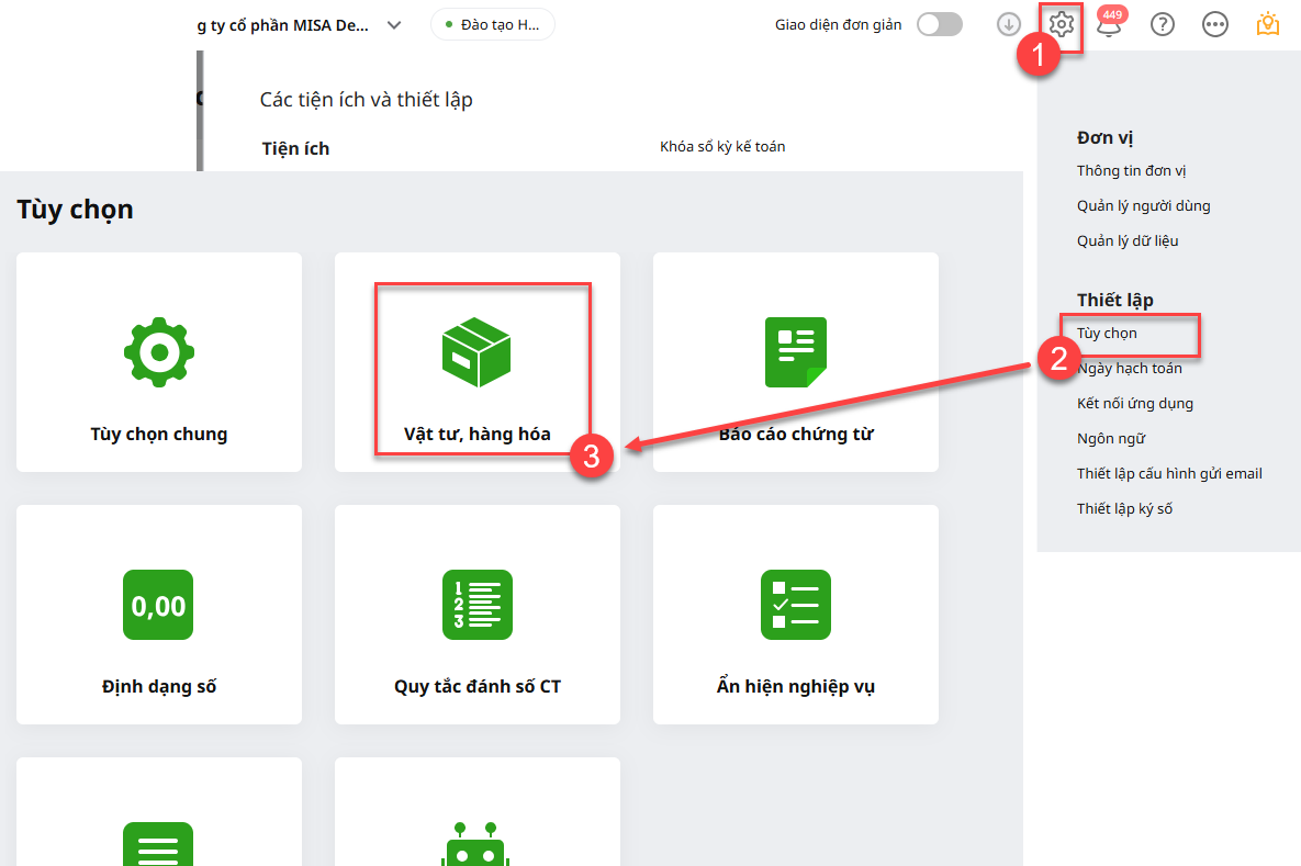 2.1.Thiết lập theo dõi Vật tư hàng hóa có theo dõi mã quy cách