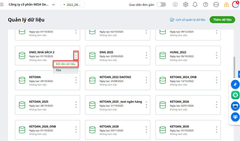 4. Làm thế nào để đổi tên dữ liệu kế toán, xóa dữ liệu kế toán trên phần mềm AMIS Kế toán HKD?
