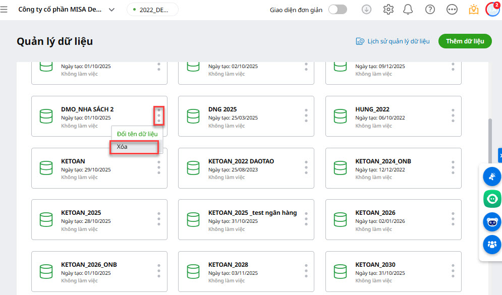 2.2. Xóa dữ liệu kế toán
