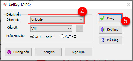 Bước 2: Tại dòng Bảng mã, chọn lại là Unicode, nhấn Đóng.