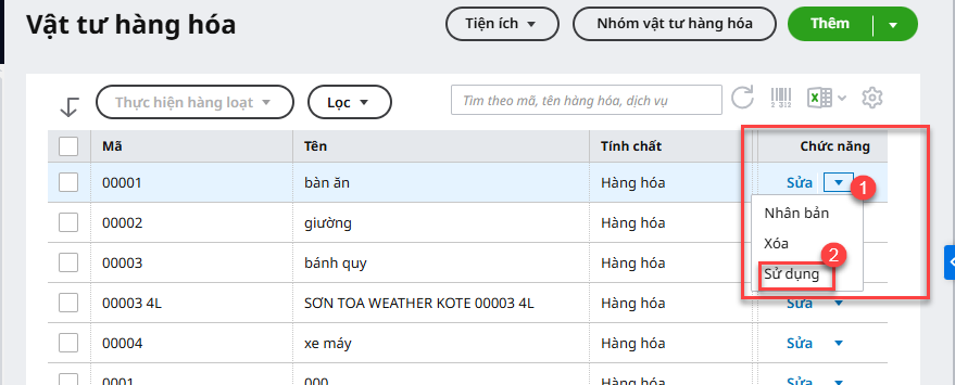 Khi tích ngừng sử dụng trong danh mục thì anh/chị thêm mới chứng từ sẽ không chọn được các mã này, để sử dụng lại các mã vật tư hàng hóa, mã đối tượng, anh/chị thực hiện như sau: