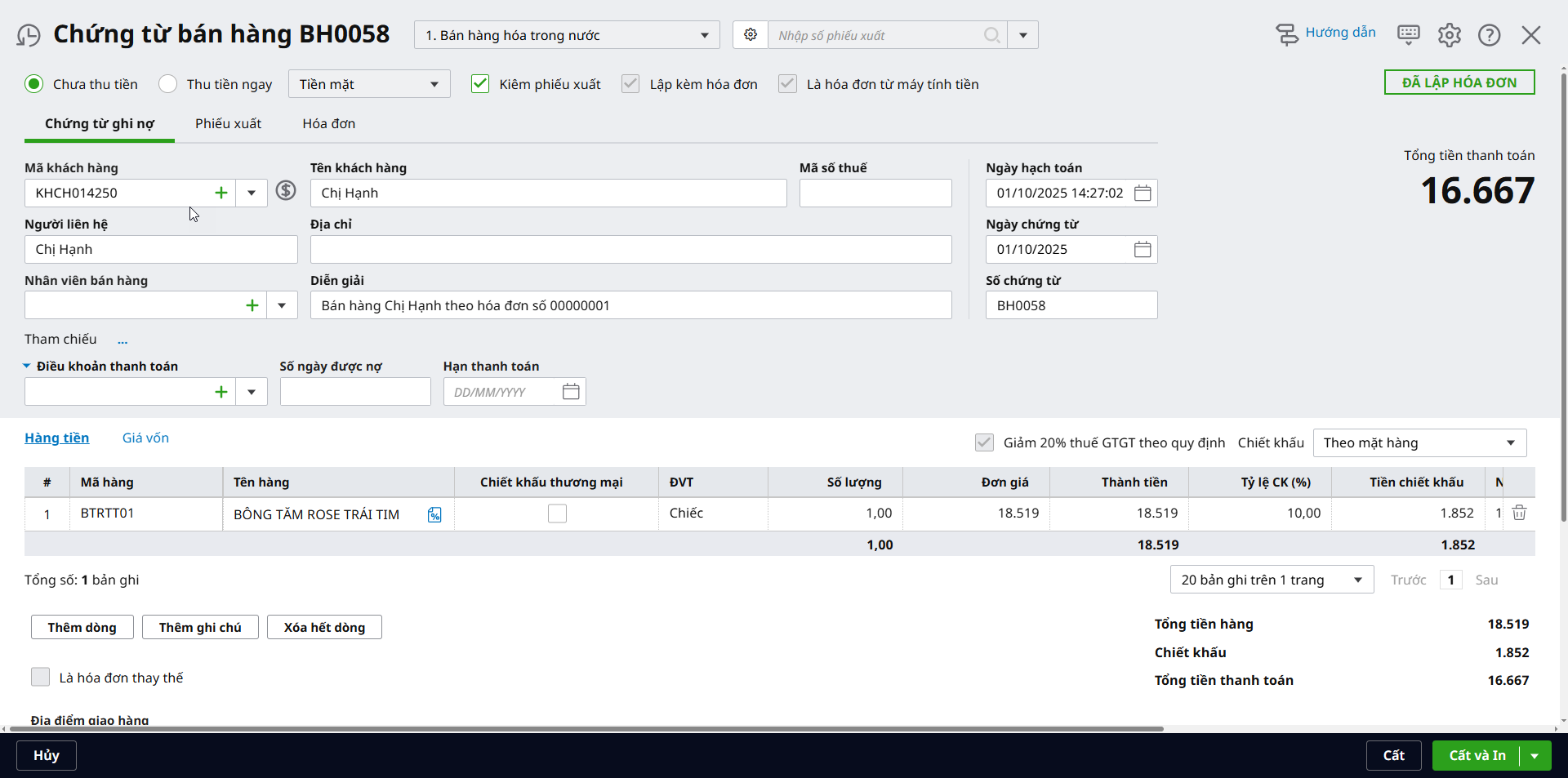 • Chương trình sẽ tự động lấy thông tin từ hóa đơn sang chứng từ bán hàng của anh/chị.
