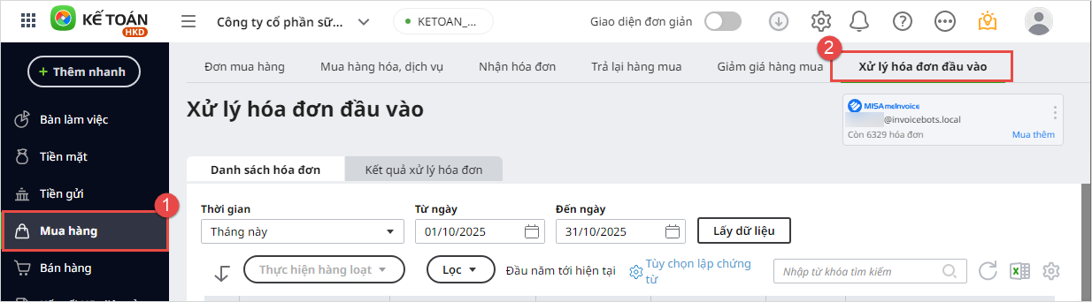 Bài viết nhằm hướng dẫn cách lập chứng từ giảm giá hàng mua, trả lại hàng mua từ các hóa đơn trong phần Xử lý hóa đầu vào nhằm tiết kiệm thời gian nhập liệu thủ công và phản ánh nghiệp vụ chính xác. Lưu ý: Tiện ích chỉ sử dụng được khi kết nối với dịch vụ Xử lý hóa đơn đầu vào. Xem cách kết nối tại đây. Điều kiện để lập được chứng từ: Hóa đơn chưa lập chứng từ và chưa đánh dấu Đã hạch toán Hóa đơn có các dòng có tính chất là Chiết khấu thương mại, Ghi chú/diễn giải, hoặc là Hóa đơn điều chỉnh có ít nhất 1 dòng có thành tiền < 0 và số lượng >= 0 Để lập chứng từ chứng từ giảm giá hàng mua từ hóa đơn đầu vào, anh/chị thực hiện theo các bước sau: Bước 1: Vào phân hệ Mua hàng, chọn tab Xử lý hóa đơn Bước 2: Tại màn hình Danh sách hóa đơn đầu vào, tìm đến hóa đơn cần lập, nhấn vào biểu tượng mũi tên (▼) và chọn Lập CT giảm giá hàng mua. Hoặc nhấn vào chi tiết hóa đơn đầu vào và chọn Lập CT giảm giá hàng mua. Bước 3: Chương trình tự động lấy thông tin hóa đơn lên chứng từ. Anh/Chị có thể điều chỉnh thông tin hoặc số tiền giảm giá (nếu cần), sau đó nhấn Cất. Điều kiện để lập được chứng từ: Hóa đơn chưa lập chứng từ và chưa đánh dấu Đã hạch toán Là hóa đơn điều chỉnh, có ít nhất 1 dòng có thành tiền < 0 và số lượng < 0 Để lập chứng từ chứng từ trả lại hàng mua từ hóa đơn đầu vào, anh/chị thực hiện theo các bước sau: Bước 1: Vào phân hệ Mua hàng, chọn tab Xử lý hóa đơn Bước 2: Tại màn hình Danh sách hóa đơn đầu vào, tìm tới hóa đơn cần lập, nhấn vào biểu tượng mũi tên (▼) và chọn Lập CT trả lại hàng mua. Hoặc nhấn vào chi tiết hóa đơn đầu vào và chọn Lập CT trả lại hàng mua. Bước 3: Chương trình tự động lấy thông tin hóa đơn lên chứng từ. Anh/Chị có thể điều chỉnh thông tin hoặc số tiền trả lại (nếu cần), sau đó nhấn Cất.1. Tổng quan