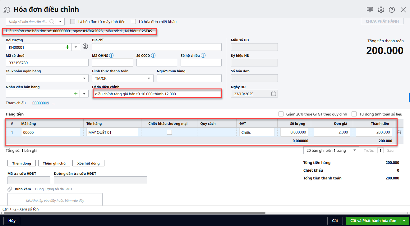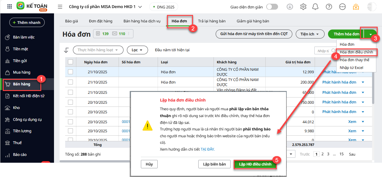 Bước 2: Lập hóa đơn điều chỉnh