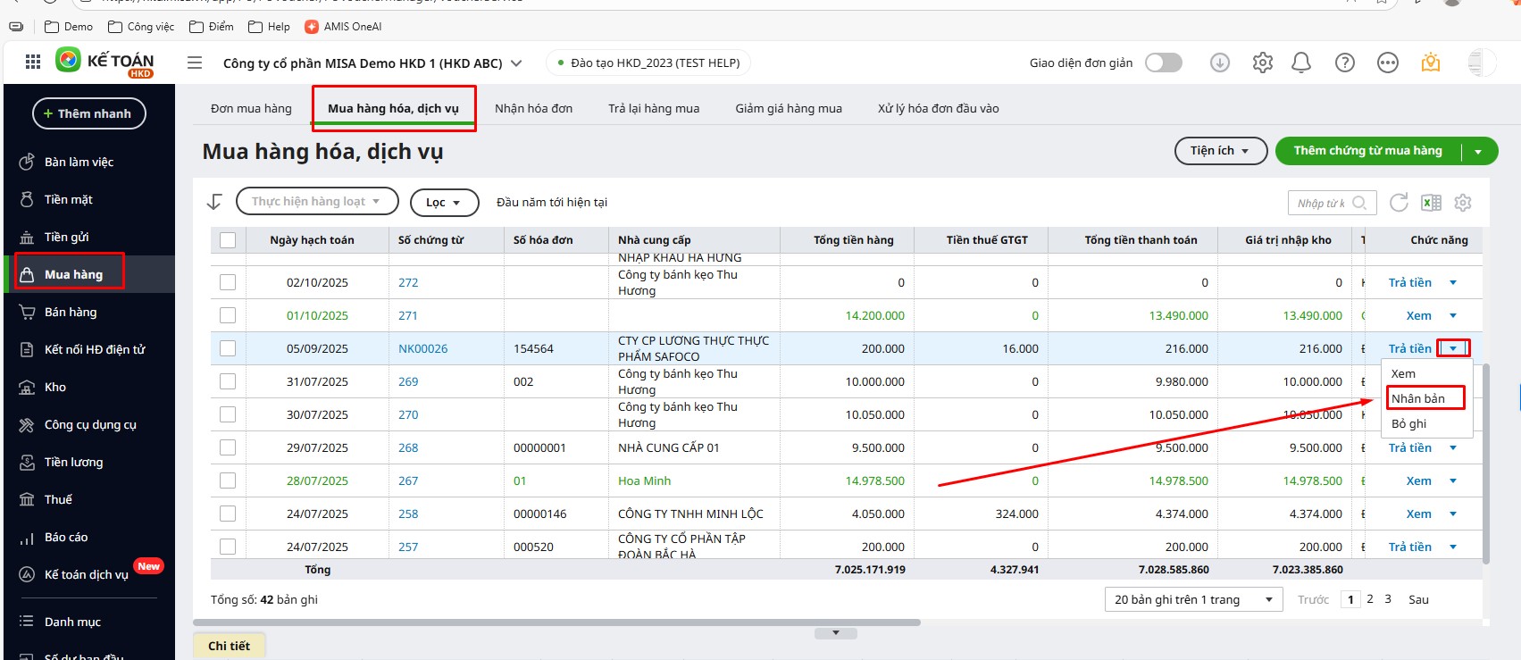 2.1. Lập từ chứng từ mua hàng có nội dung tương tựVới các chứng từ mua hàng hóa có nội dung tương tự nhau như cùng nhà cung cấp, cùng mặt hàng, cùng số lượng mua,… anh/chị có thể lập nhanh theo một trong hai cách sau: Cách 1: Lập nhanh từ danh sách chứng từ mua hàng