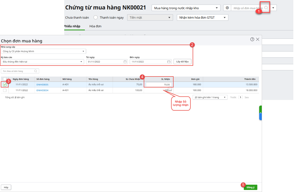 Bước 3: Chọn đơn mua hàng theo một trong hai cách sau:
