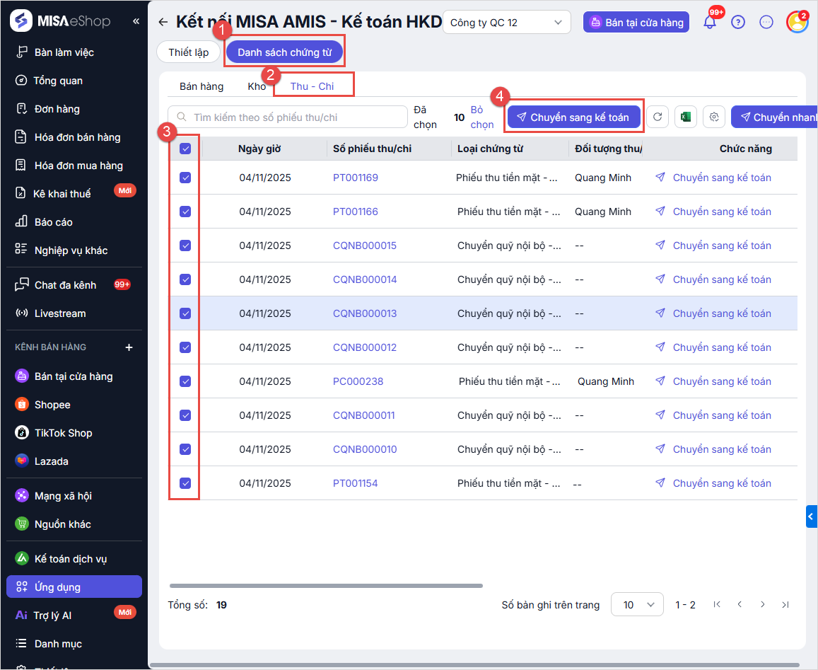 4. Lấy chứng từ từ ESHOP V2 qua AMIS kế toán HKD loại Thu-Chi