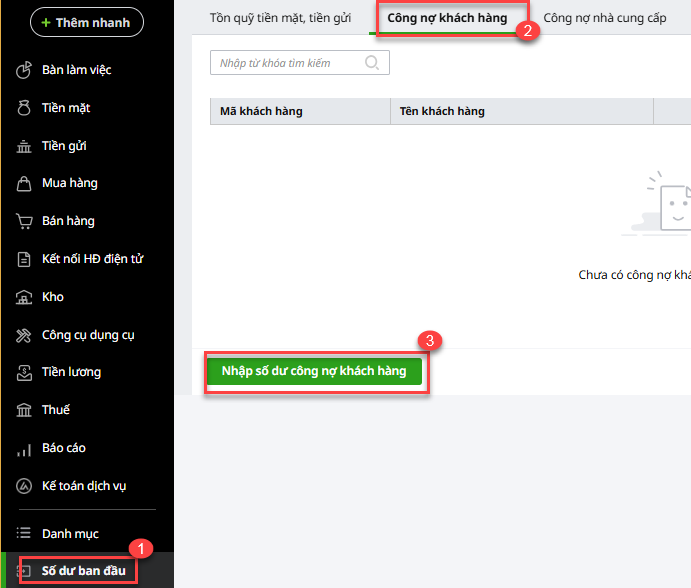 Bước 1: Vào Số dư ban đầu, chọn Công nợ khách hàng: