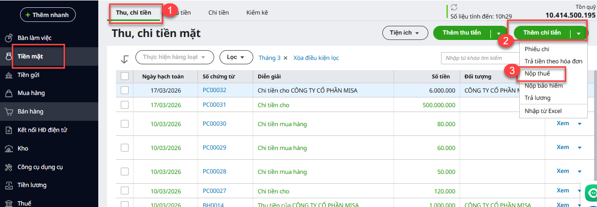Bài viết hướng dẫn cách thực hiện nộp thuế GTGT, thuế TNCN phát sinh trong kỳ trên phân hệ Tiền mặt hoặc Tiền gửi.