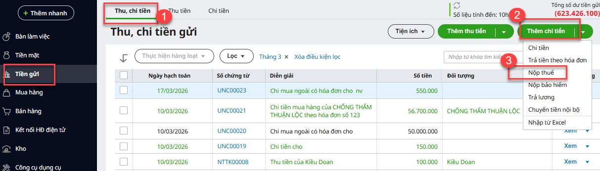 2.2. Nộp thuế bằng tiền gửi