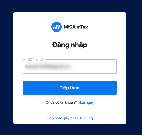 Phần mềm điều hướng sang MISA mTax: nhập tài khoản và mật khẩu như tài khoản mật khẩu của phần mềm AMIS HKD.