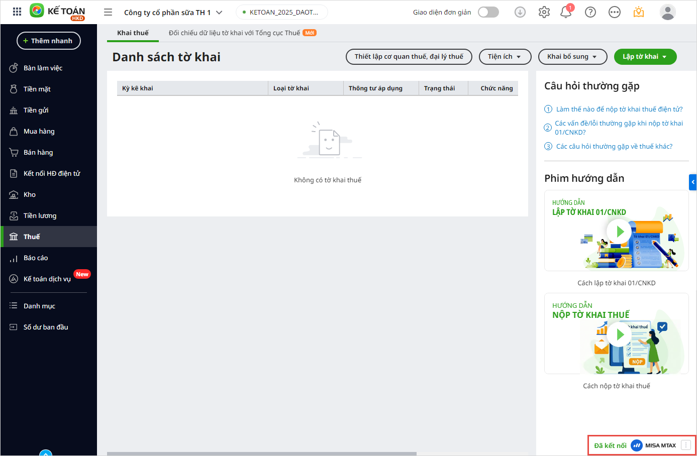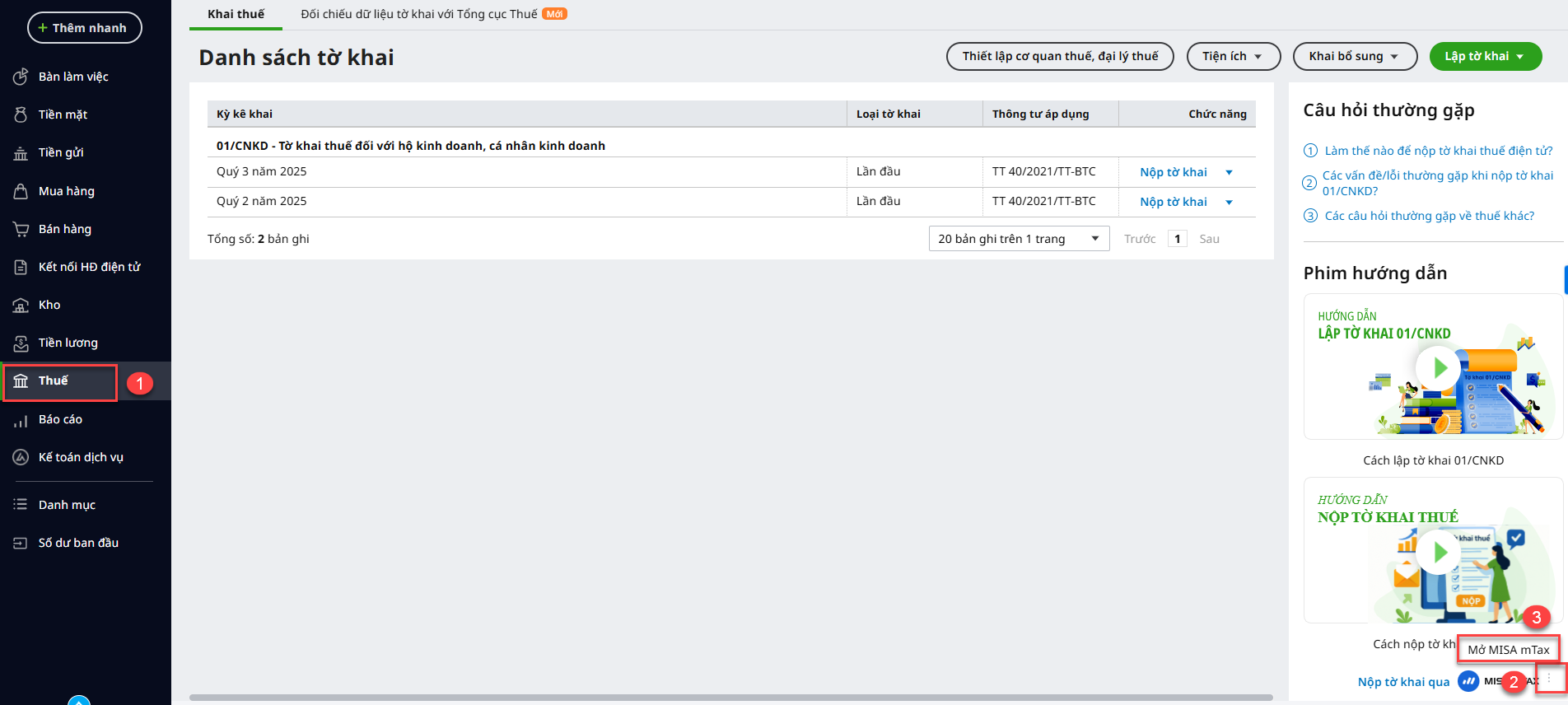 2.3. Nộp tờ khai thuế trực tiếp từ AMIS Kế toán HKD thông qua MISA mTax