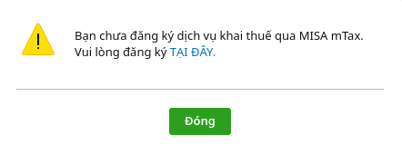• Khi nhấn tạo tờ khai mà bấm Nộp tờ khai, nếu chưa đăng ký dịch vụ khai thuế qua MISA mTax, màn hình sẽ hiển thị cảnh báo “Bạn chưa đăng ký dịch vụ Khai thuế qua MISA mTax. Vui lòng đăng ký tại đây.”