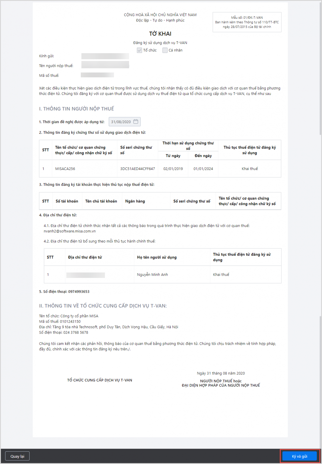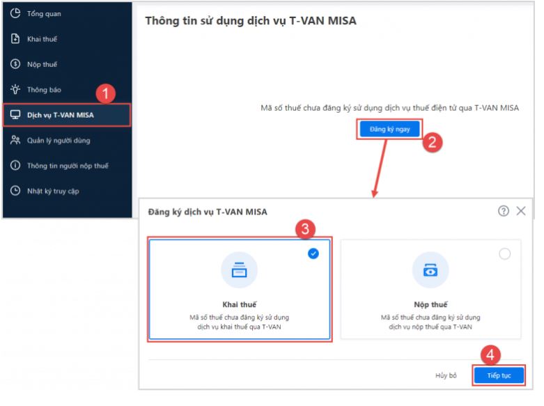Bước 4: Đăng ký sử dụng dịch vụ T-VAN MISA