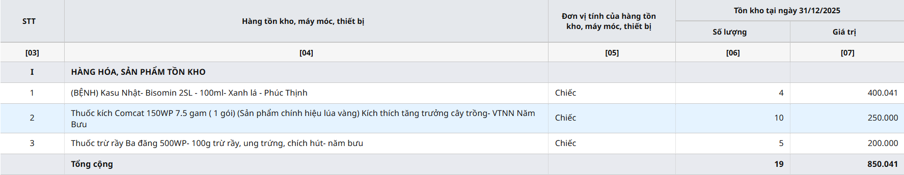 Bài viết hướng dẫn cách lập phụ lục 01/BK-HTK: Bảng kê hàng tồn kho, máy móc, thiết bị của hộ kinh doanh, cá nhân kinh doanh tại thời điểm ngày 31 tháng 12 năm 2025 trên phần mềm AMIS Kế toán HKD.