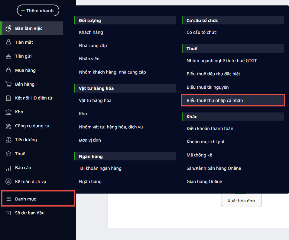 Bước 1: Vào Danh mục\Thuế\Biểu thuế thu nhập cá nhân