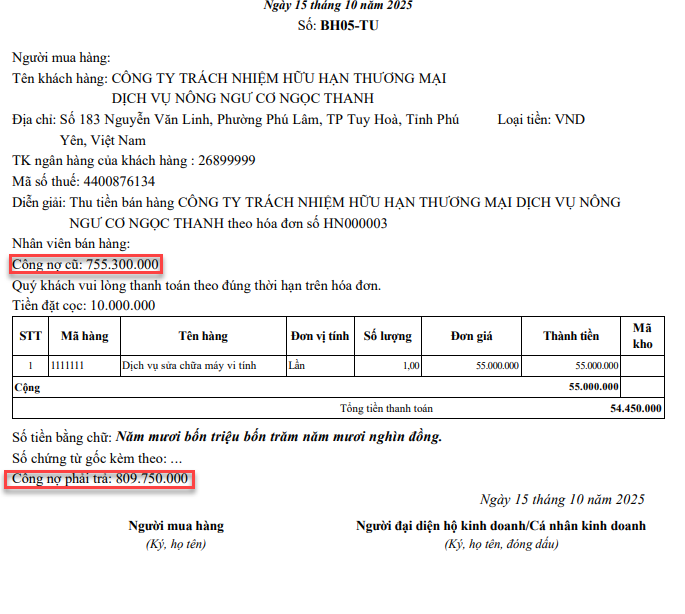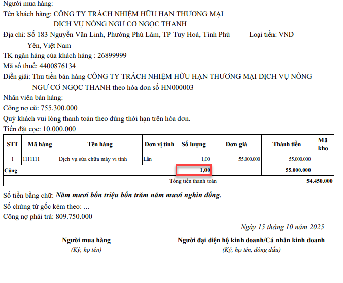 2.5. Thêm dòng diễn giảiVí dụ: Thêm dòng Diễn giải “Quý khách vui lòng thanh toán theo đúng thời hạn trên hóa đơn”