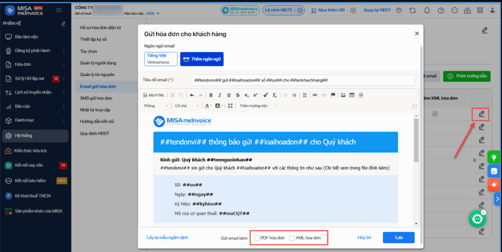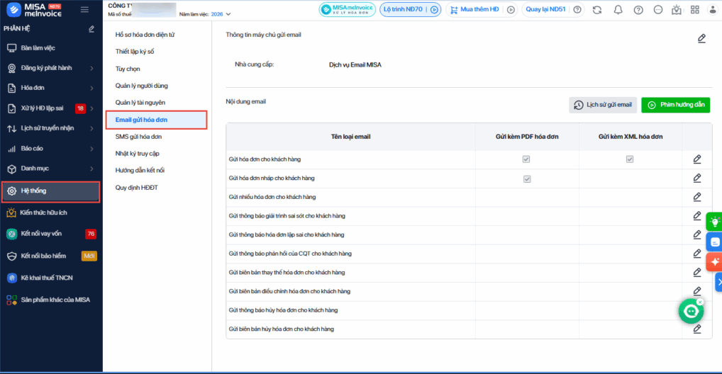 Xem chi tiết việc thực hiện thiết lập email gửi hóa đơn tại đây.
