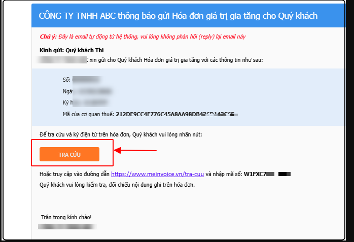 Bước 1. Mở email nhận được, nhấn nút Tra cứu màu cam.