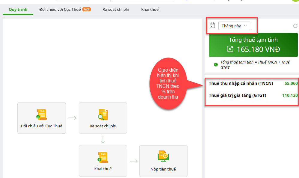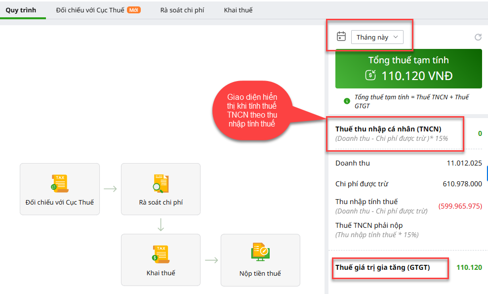 - Tổng thuế tạm tính = Thuế TNCN + Thuế GTGT.