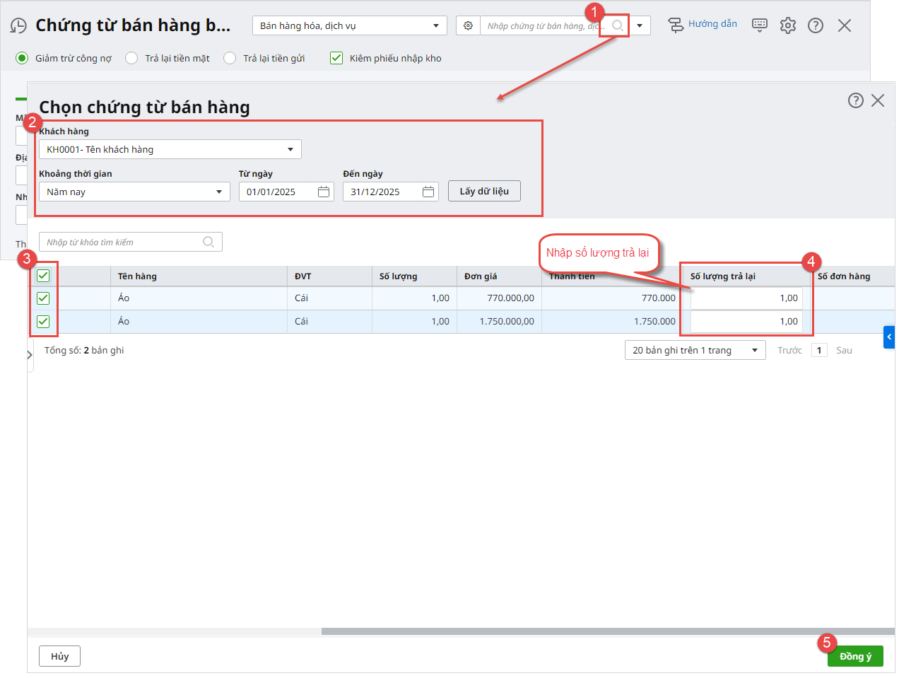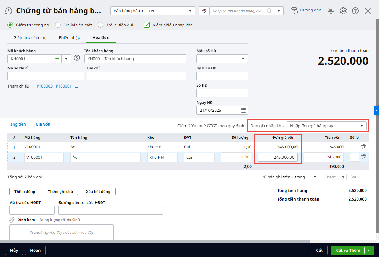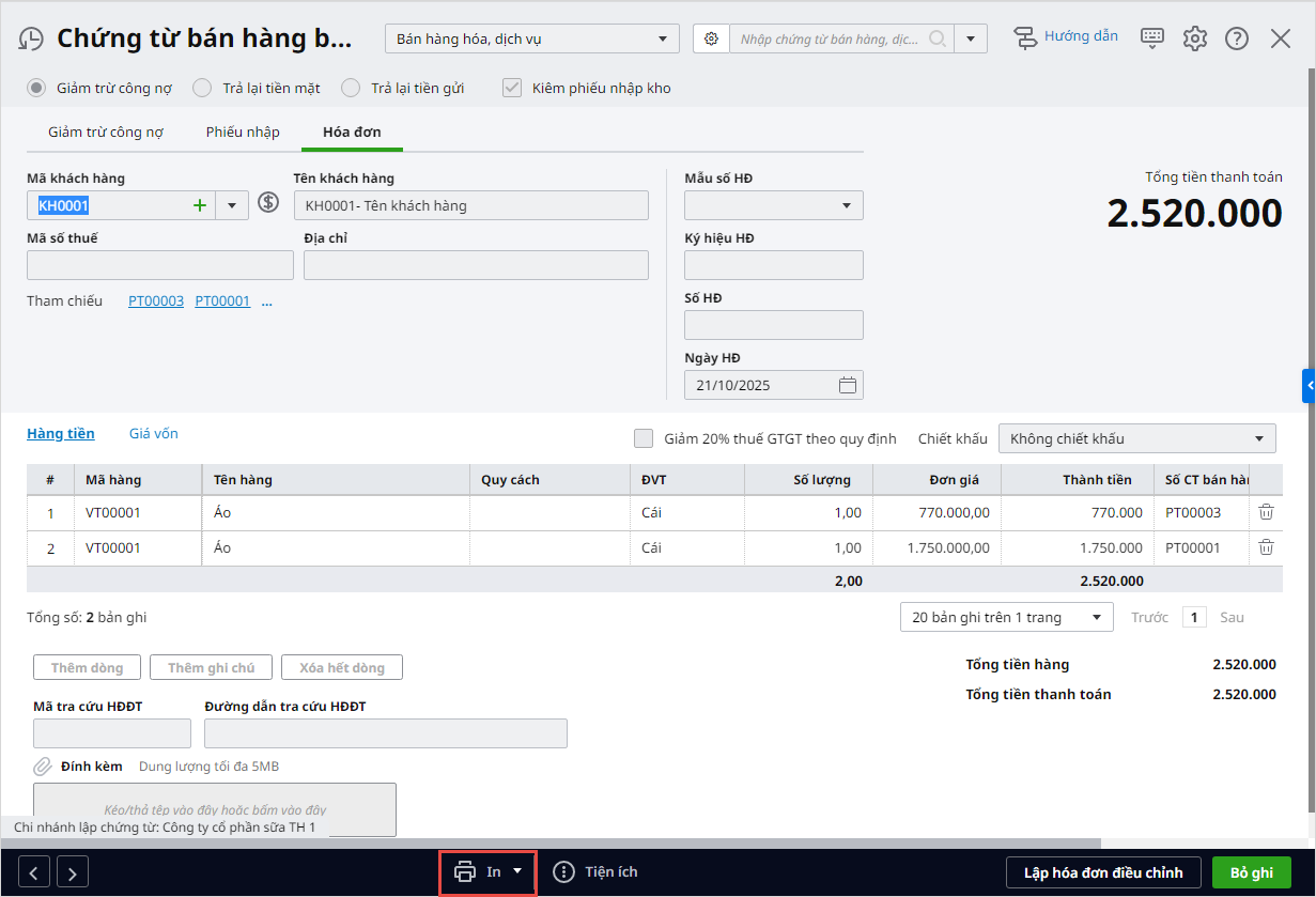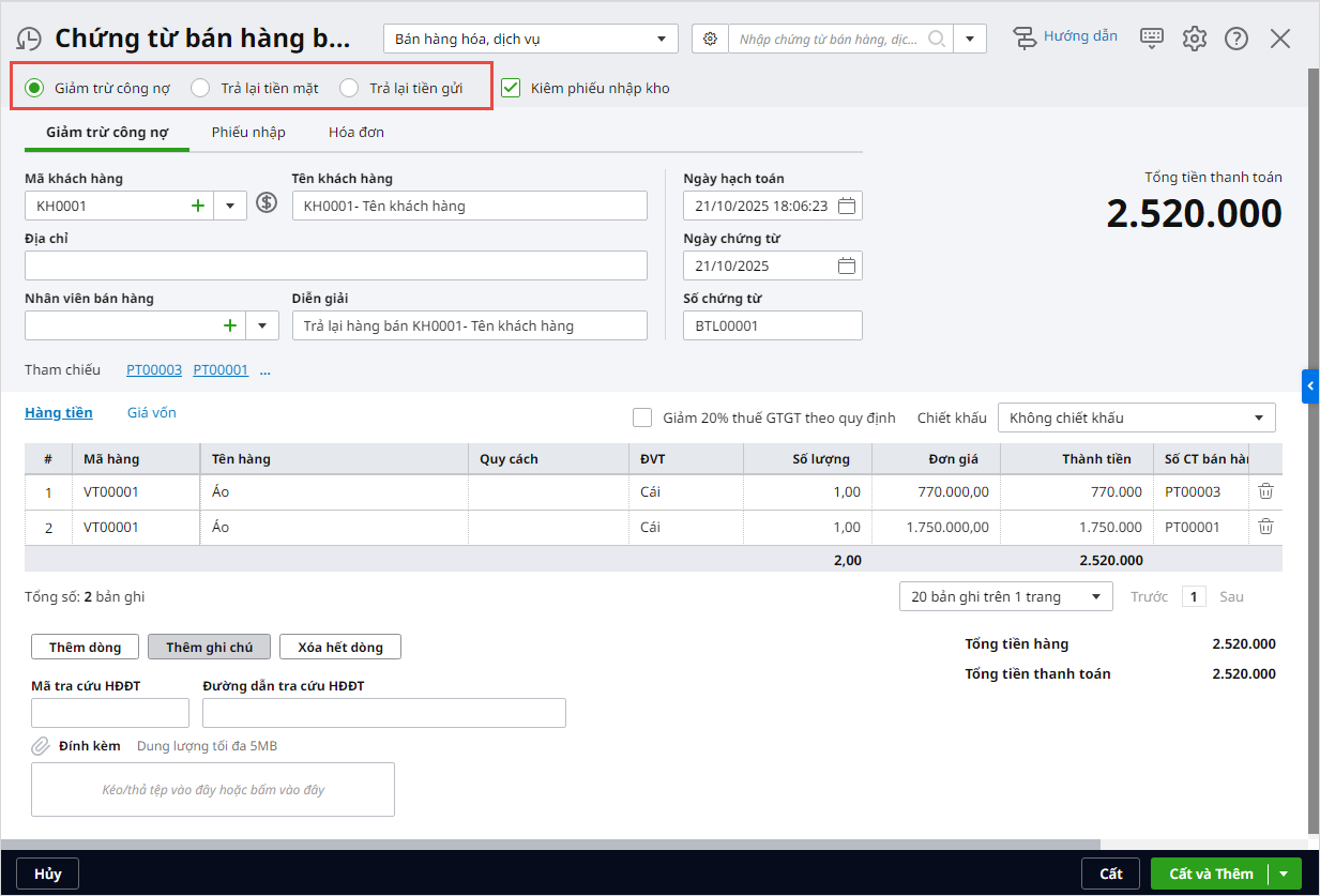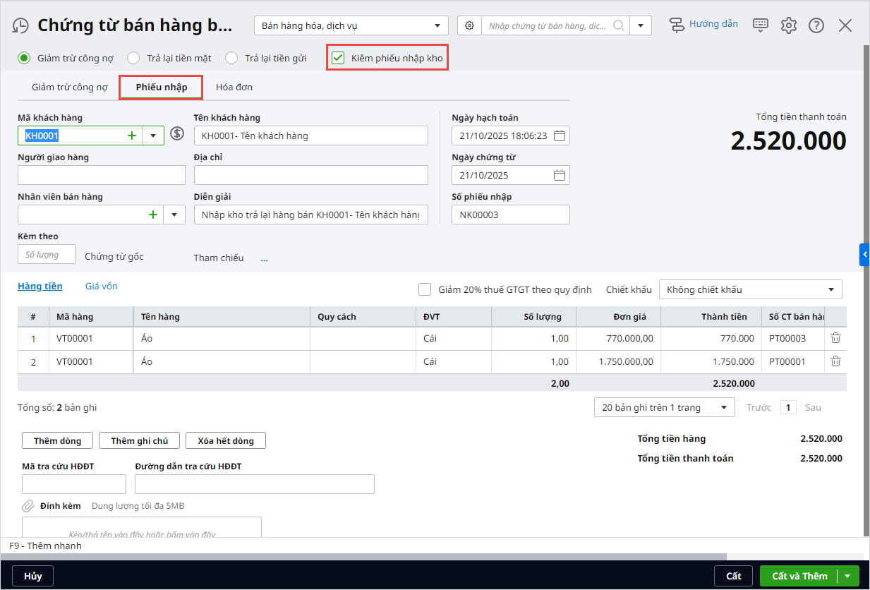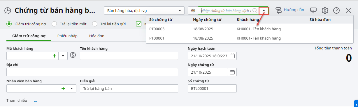 Bài viết nhằm hướng các bước xử lý nghiệp vụ khách hàng trả lại hàng đã bán, bao gồm các trường hợp có hoặc không có hóa đơn, đảm bảo tuân thủ quy định kế toán và pháp luật về hóa đơn, quản lý kho. Nghiệp vụ Thêm trả lại hàng bán được thực hiện trên phần mềm như sau: Bước 1: Vào phân hệ Bán hàng, chọn tab Trả lại hàng bán, nhấn Thêm trả lại hàng bán Bước 2: Chọn chứng từ bán hàng có mặt hàng được giảm giá theo một trong hai cách sau: Cách 1: Nhấn vào biểu tượng mũi tên để chọn chứng từ bán hàng trong danh sách Cách 2: Nhấn biểu tượng kính lúp để tìm và chọn chứng từ bán hàng gốc Nếu không xác định được chính xác trả lại cho chứng từ bán hàng gốc nào thì bạn bỏ qua bước này. Bước 3: Hoàn thiện thông tin chứng từ trả lại hàng bán – Lựa chọn phương thức giảm trừ là Giảm trừ công nợ hoặc Trả lại tiền mặt hoặc Trả lại tiền gửi – Tích chọn ô Kiêm phiếu nhập kho, nếu muốn lập luôn phiếu nhập kho cho hàng bán bị trả lại. – Khai báo thêm các thông tin trên chứng từ trả lại hàng bán. – Khai báo thông tin hóa đơn trả lại hàng bán của khách hàng bên tab Hóa đơn. Bước 4: Chọn chức năng In, sau đó chọn mẫu chứng từ cần in. Lưu ý Trường hợp lựa chọn lập chứng từ trả lại hàng bán Kiêm phiếu nhập kho, đơn giá vốn của mặt hàng bị trả lại sẽ được tính như sau: => Khi đó, Kế toán sẽ thực hiện nhập lại Đơn giá vốn bằng tay hoặc lựa chọn Đơn giá giá nhập kho Lấy từ giá xuất kho.I. Tổng quan