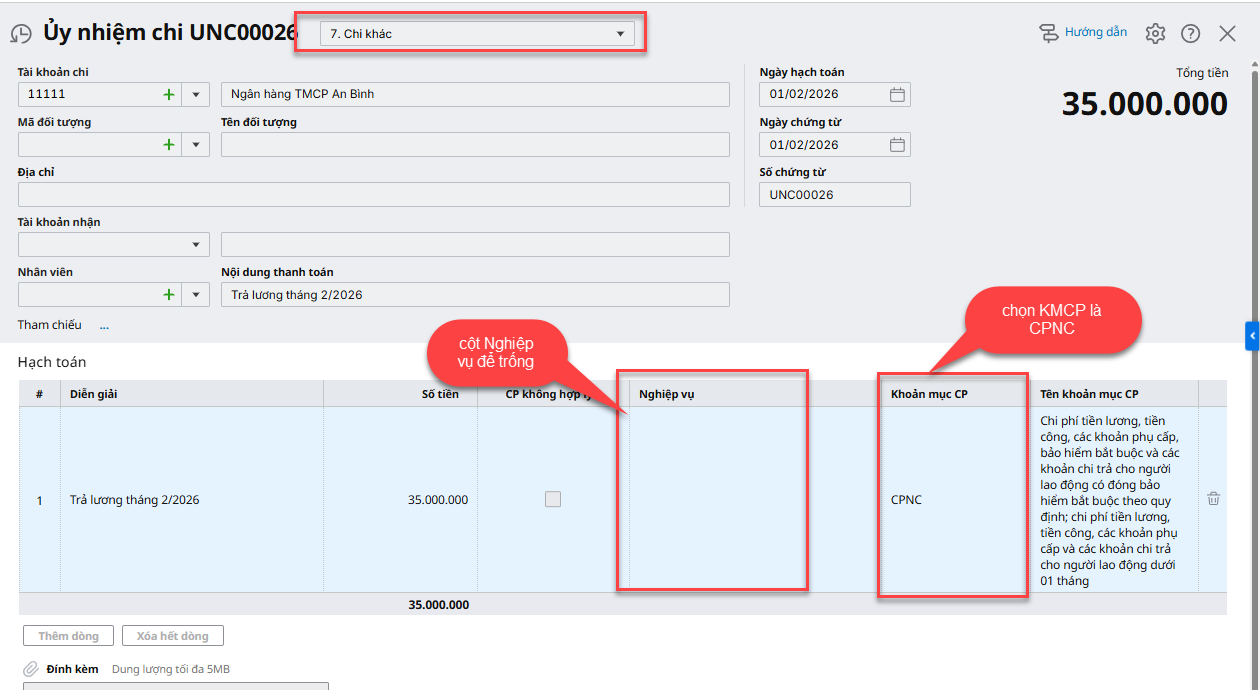 Cách 2: Lập phiếu chi khácCác bước thực hiện như sau: