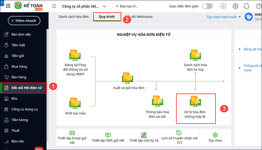 Sau khi xử lý hóa đơn không hợp lệ, người dùng có thể thực hiện lập và phát hành hóa đơn mới :