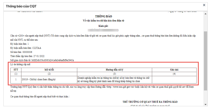 2.1. Kiểm tra lý do Hóa đơn bị từ chối cấp mã